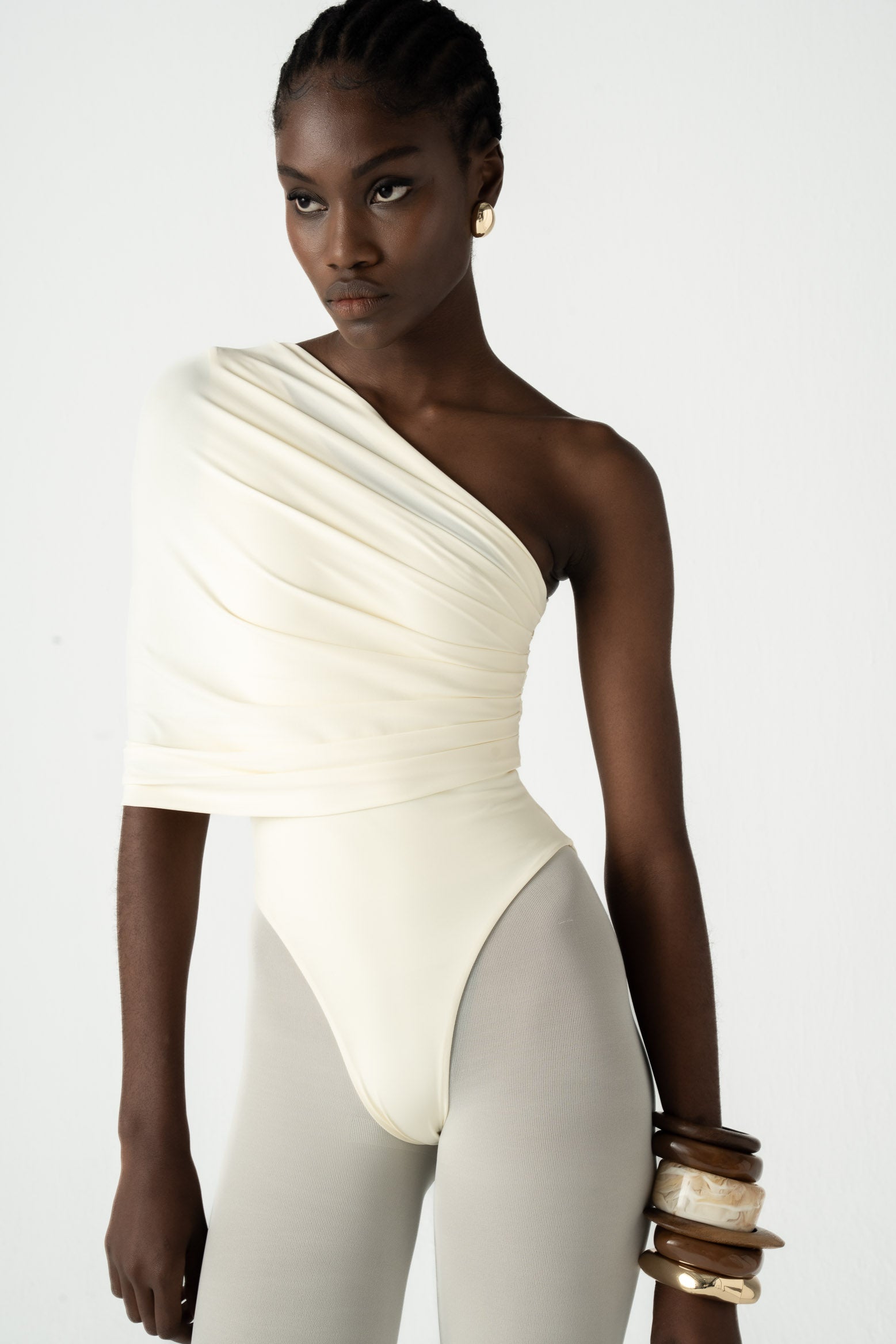 STRING SHIRRING SHIRT IN WHITE